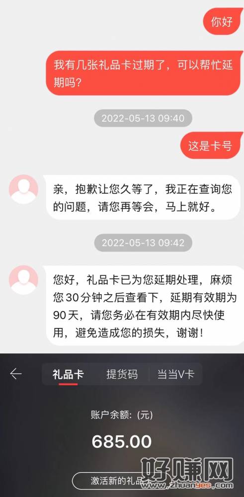 当当网礼品卡有过期的,可以找客服申请延期