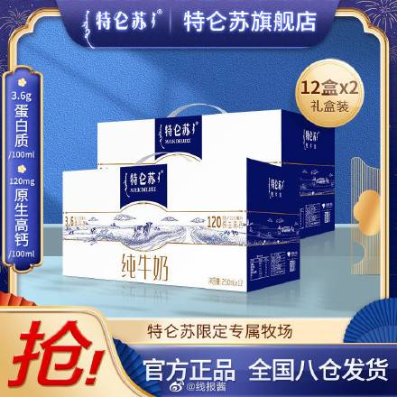 蒙牛 特仑苏纯牛奶250ml×12盒×2提礼盒,74.2[ 2月 ]