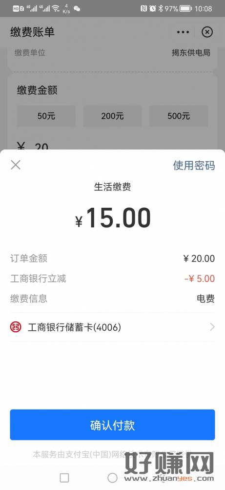 支付宝充电费立减