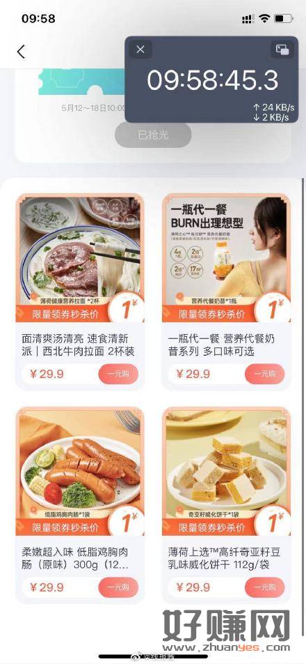 百度APP-底部惠生活-右上角搜索【薄荷健康】进入-1元抢薄荷爆款进入-再点击1元购