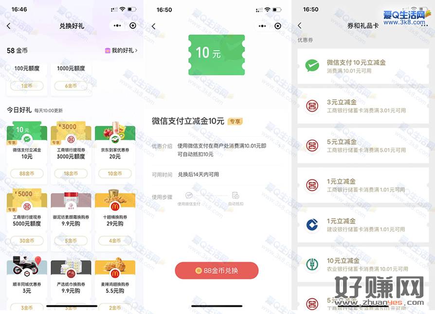 微信支付有优惠里面有88金币兑换10元微信立减金,可能每个人不一样,还有个小编是5元微信立减金