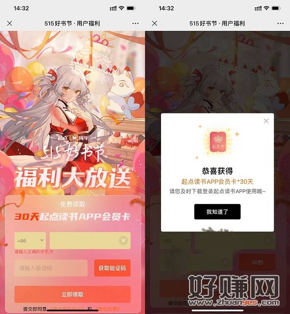 手机打开链接进入活动,输入手机号可免费领取一个月起点读书会员,亲测领取秒到账,喜欢看小说的上!