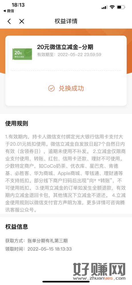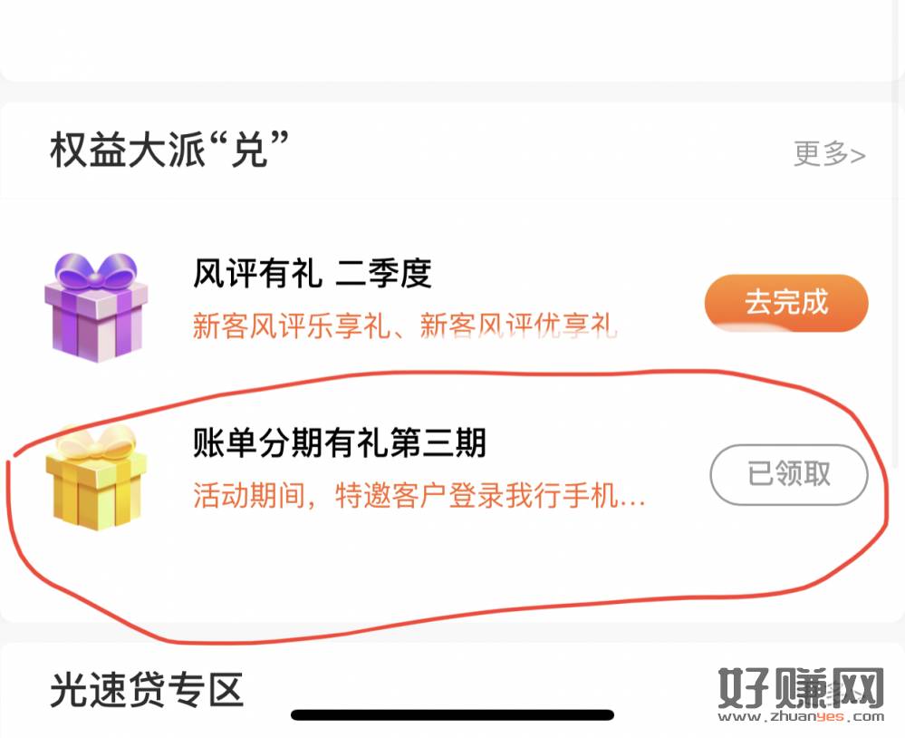 光大app,权益服务,分100元,3期,手续费2.99,没做的果
