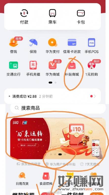 华为钱包可以领10块钱无门槛消费券