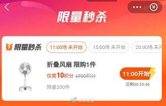 支付宝搜 收钱有奖,11,15,20点有10积分抢小风扇,每场200个