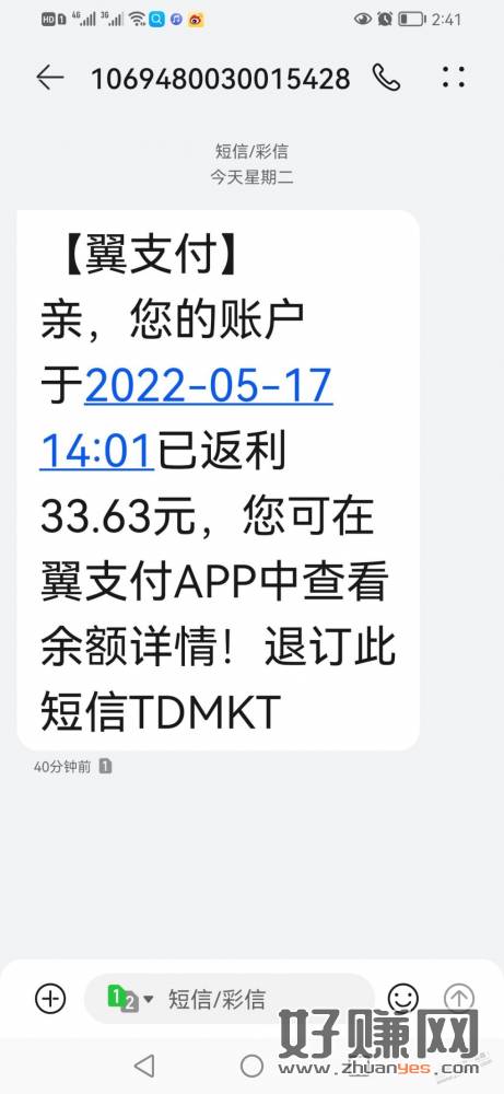 刚收到短信,一查app到了,没花一分钱投资,值了