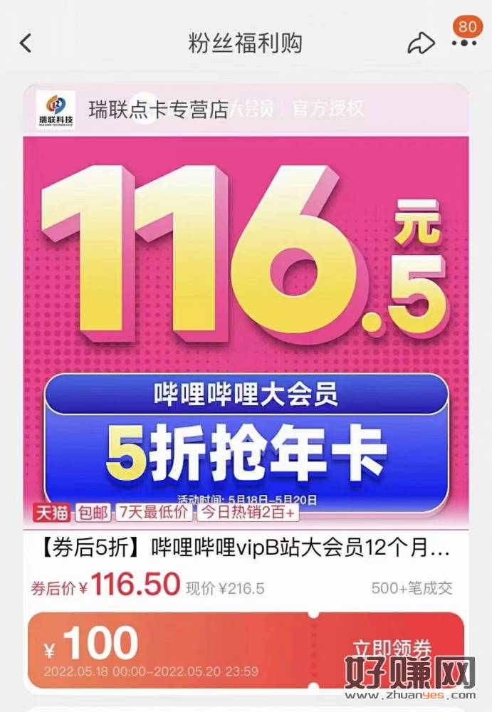 b站大会员vip年卡12个月!官方直充,116元