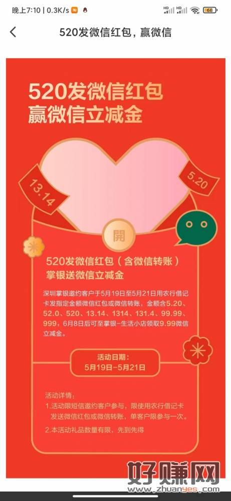 深圳农行掌银客户9.99立减金,明天开始 6.8号领取
