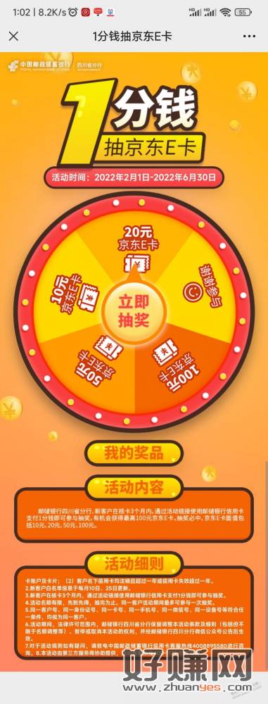 四川 邮储xing/用卡22.4.30前下卡 的 抽新人礼10到100e卡 好用加果