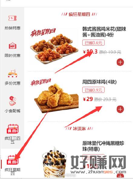 肯德基有需要安排,扫码选肯德基,再下拉找到星期四能便宜一点