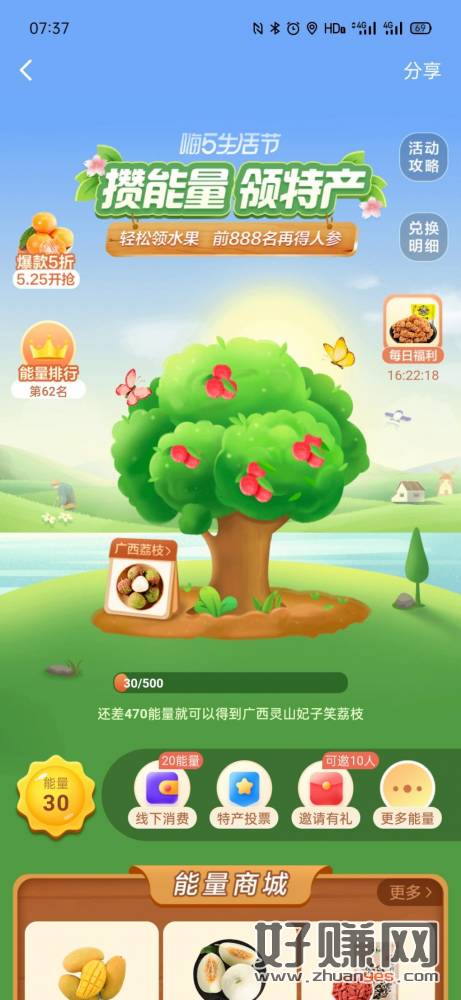 不是特别难,可以换10电费水果等,助力可以拿100,再随便做几个任务就到了,今天第一天