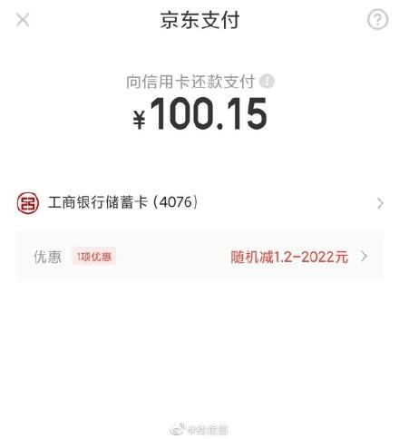 京东金融,用工商储蓄卡还卡,还100减至少1.2