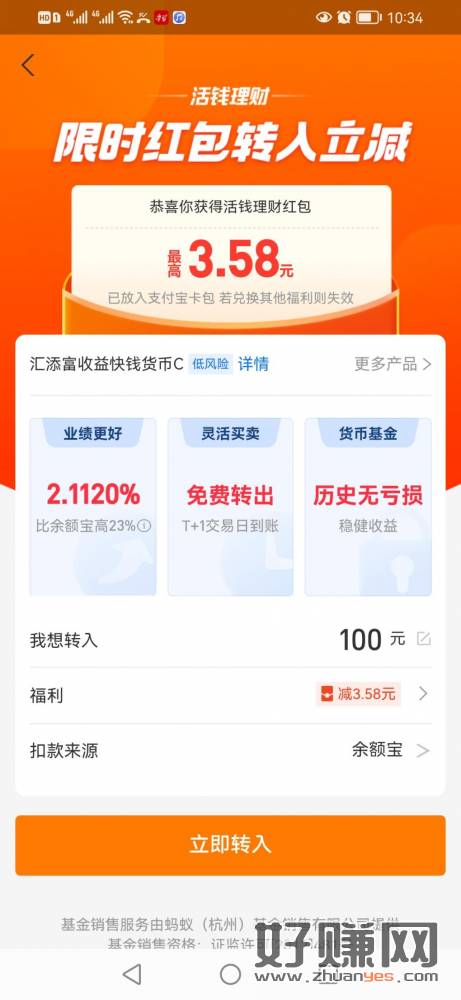 扫码有3.58或2.88,余额宝转余额任意金额也出一个2.88. 投100抵扣。之前出过2.88的一般有,之前没有的也可以扫扫试试。