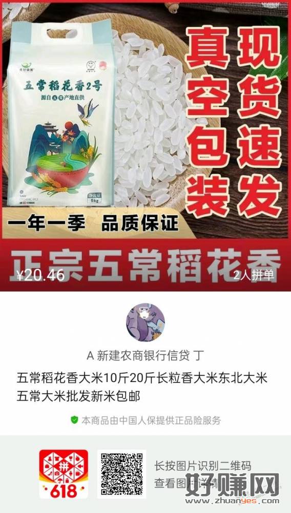 食分碗美,也算是品牌货,曾经和中国邮政联名过大米,因为没吃过,具体口感如何,不予置评。选双层包装,20斤稻花香米,执行标准19266,买两件叠加省钱月卡-7和云闪付20-5,实付88.46元40斤,折合2.2元一斤。