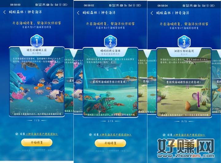 支付宝蚂蚁森林内测“神奇海洋” 5月22日消息,蚂蚁森林昨日开启了新的玩法“神奇海洋”,目前只有小部分人内测中。蚂蚁集团对此表示,保护海洋生态系统,人与自然和谐共生。
