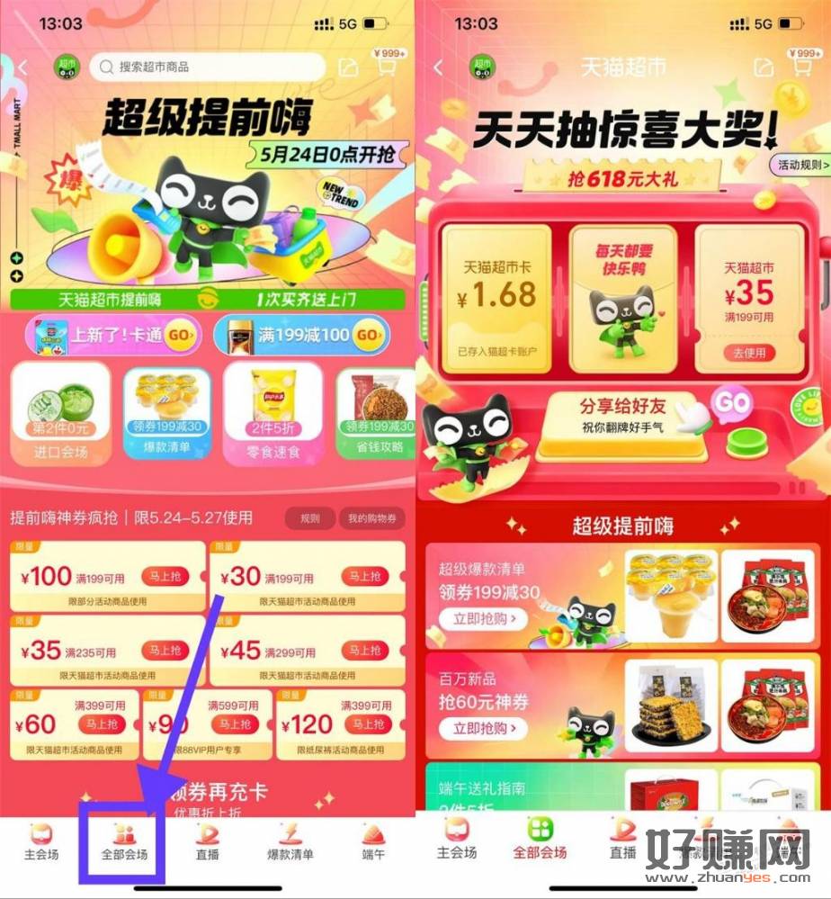 手机淘宝APP扫码->底部“全部会场”->抢618元大礼->每天1次机会