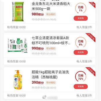 联通app~搜秒杀专区~390积分兑换1kg洗洁精