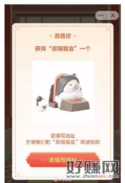 抖音搜【抖来云逛馆】反馈 答题中了御猫盲盒