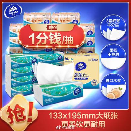维达倍韧抽纸3层100抽24包,39.9维达倍韧抽纸纸巾面巾