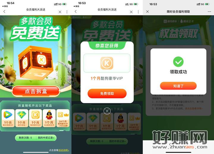 然后返回活动页面,下拉拆盲盒跳转到联通APP参与,王卡用户必中1个月随机会员!