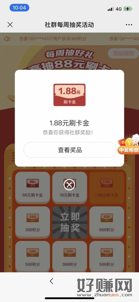 微信扫码即可抽奖,以前每周都是积分,今天有立减金,4户中2