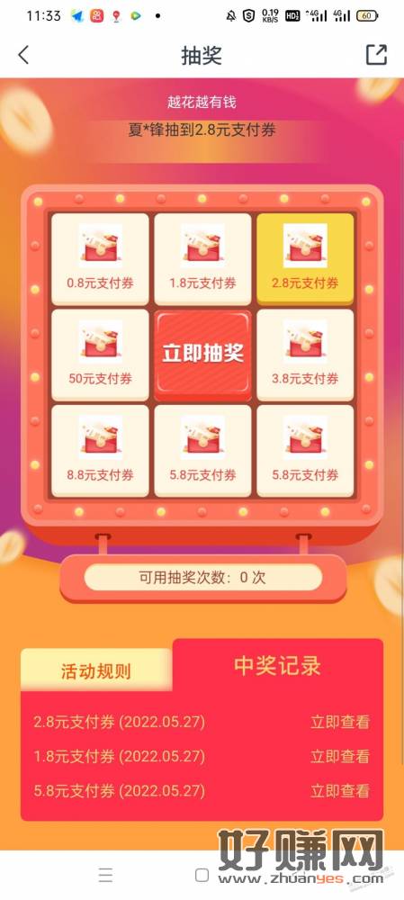 月底了查到有作业没做,中了3张支付券