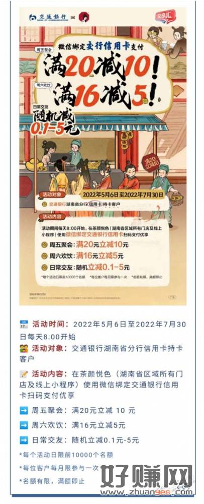 湖南交行xing/用卡活动,茶颜悦色满20-10等