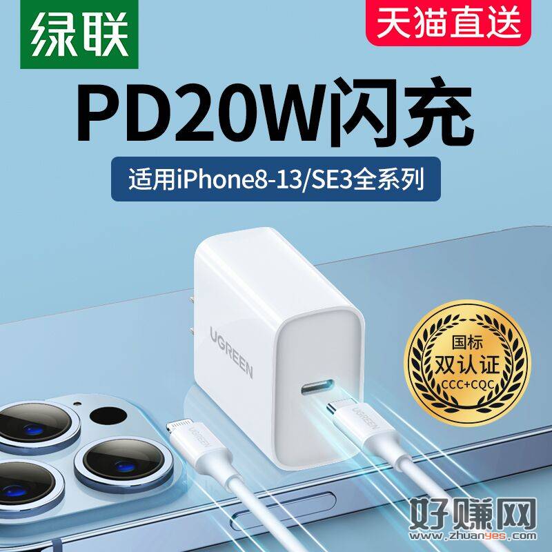 绿联20w苹果PD智能快充头