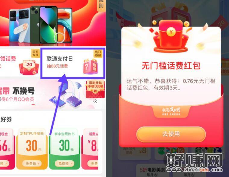 【联通支付日抽0.1~88元话费券】新一期!联通APP->搜索“超级星期五”->联通支付日->直接抽随机话费券->返回首页充值缴费->自定义话费充值金额->输入领到的话费券金额->使用沃钱包支付->话费秒到账