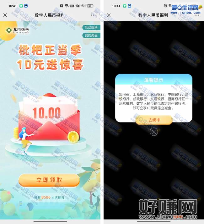 活动期间,任意数字人民币钱包首次绑定苏州银行卡,即可获得10元微信立减金,