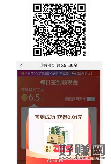 美团APP签到7天有6.5现金,页面提示可提现,扫码直达