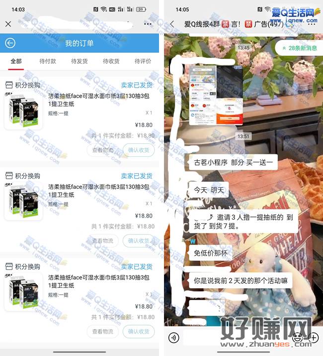 大家可以去试试接码,每邀请到3个人就可以撸1提抽纸好划算