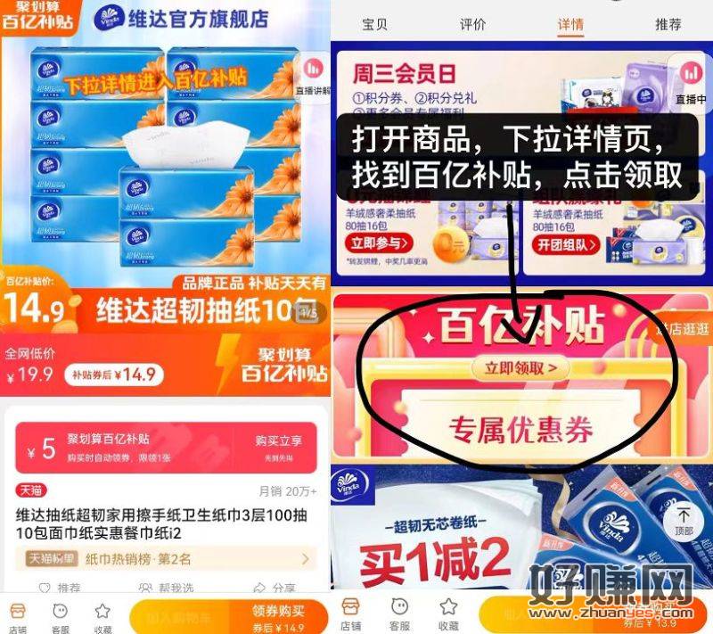 如果价格不对的,下拉至详情页,找到补贴,点击领取