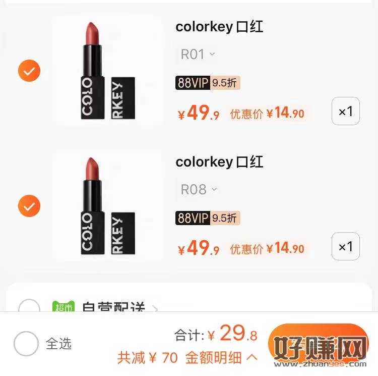 速colorkey口红两支29