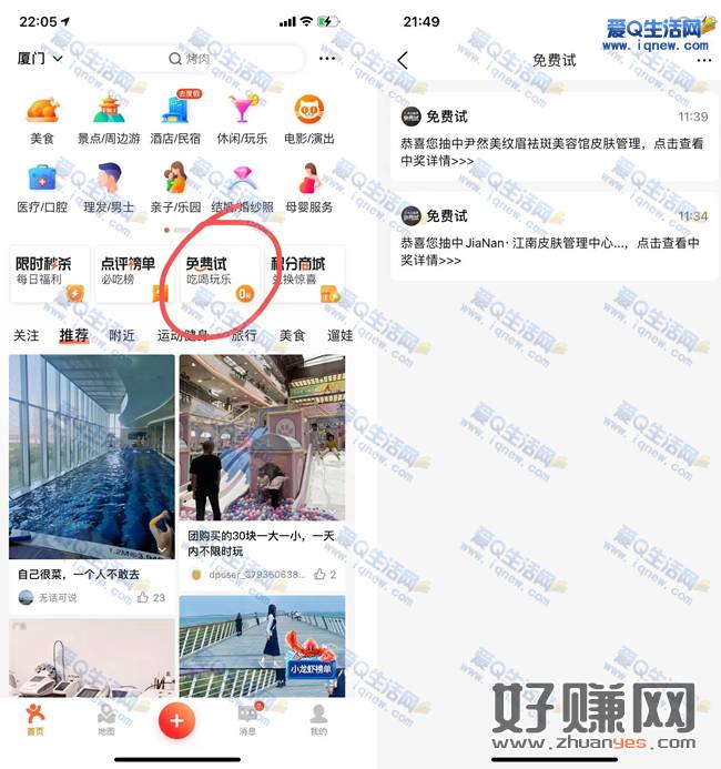 大众点评APP-首页【免费试】点进去按照要求申请即可