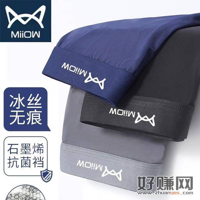 29.9元[ 大牌猫人服饰 ]男士夏季纯棉冰丝内裤3条纯