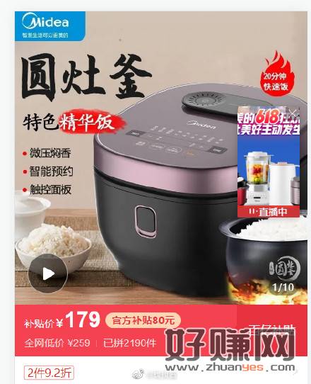 限量、179美的智能电饭煲家用4l多功能全自动饭煲匠银