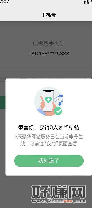 绑定手机号领3天豪华绿钻