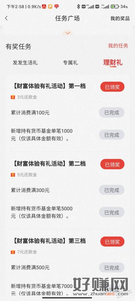 发现精彩app-任务广场-理财礼,分别买7000,5000,1000各一次,选T 0,