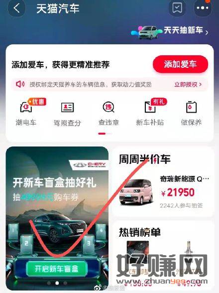 手淘 搜:天猫汽车开盲盒,有机会得1元虹包 手机号