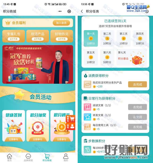 这个活动大家都可以参与一下哦,每天都可以攒积分撸实物