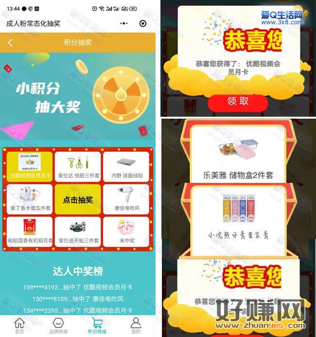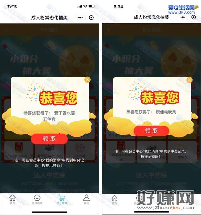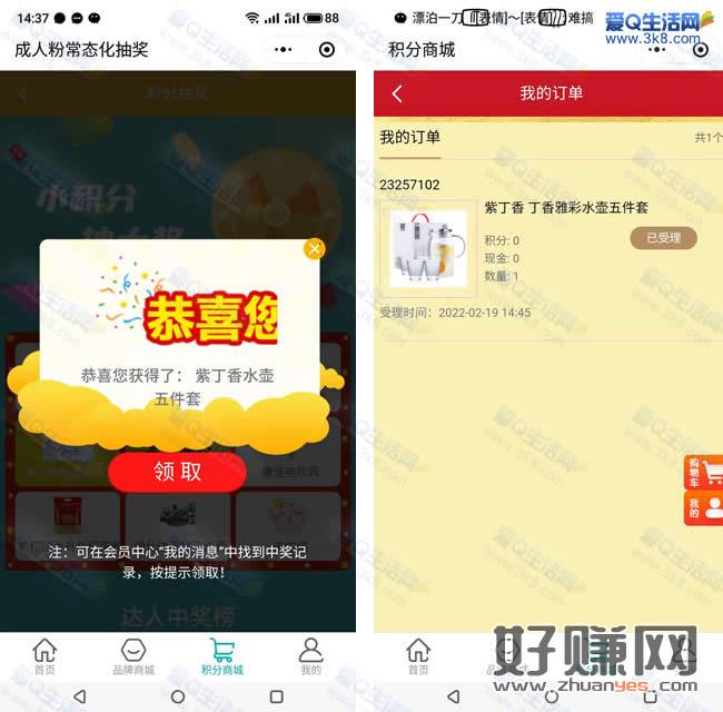 3.奖品兑换地址:在积分商城页面-【消息中心】里兑换-然后在【我的订单】可看到兑换记录