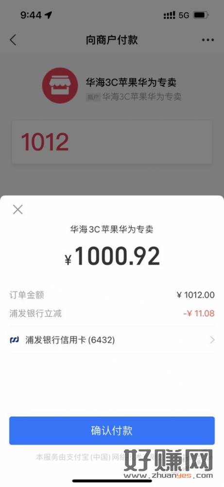 ZFB浦发xing/用卡扫吧码,1000立减11.08