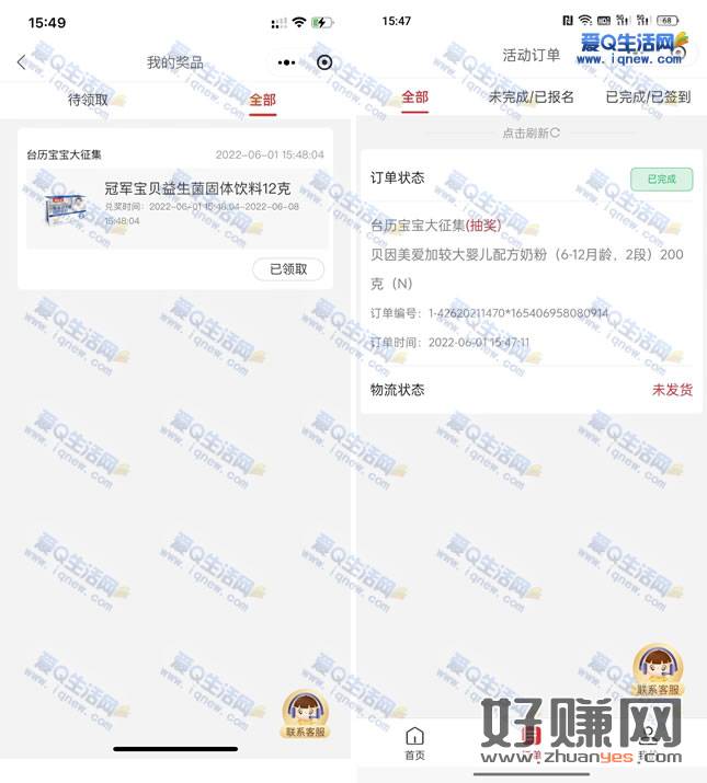 贝因美抽实物多号多撸 亲测一罐奶粉+益生菌