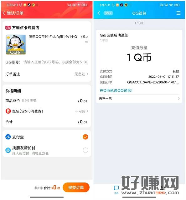 打开淘宝APP扫码进入活动,直接下单输入QQ号支付0.01元即可购买1Q币!一号限制一次!多号多撸!