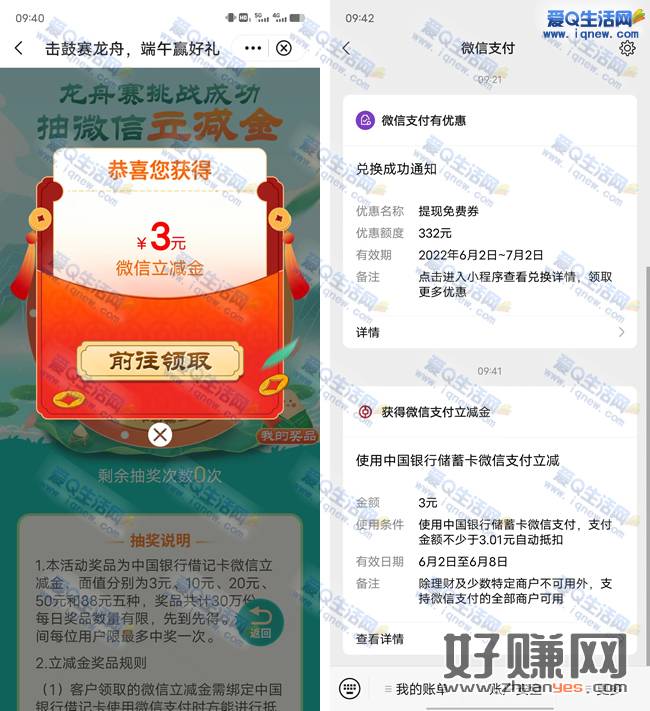 中行玩赛龙舟抽最高88元微信立减 亲测3元秒到