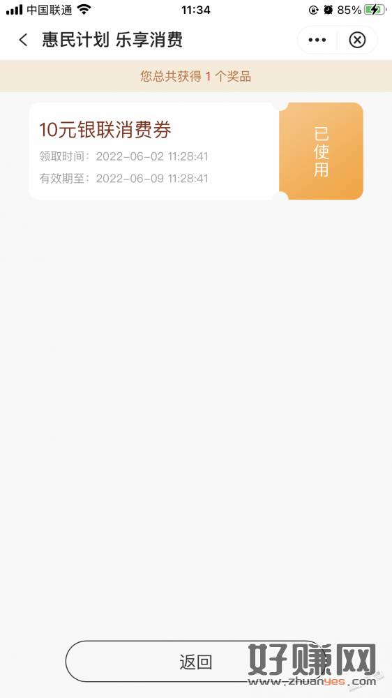 中国银行10银联消费券 吧码可套