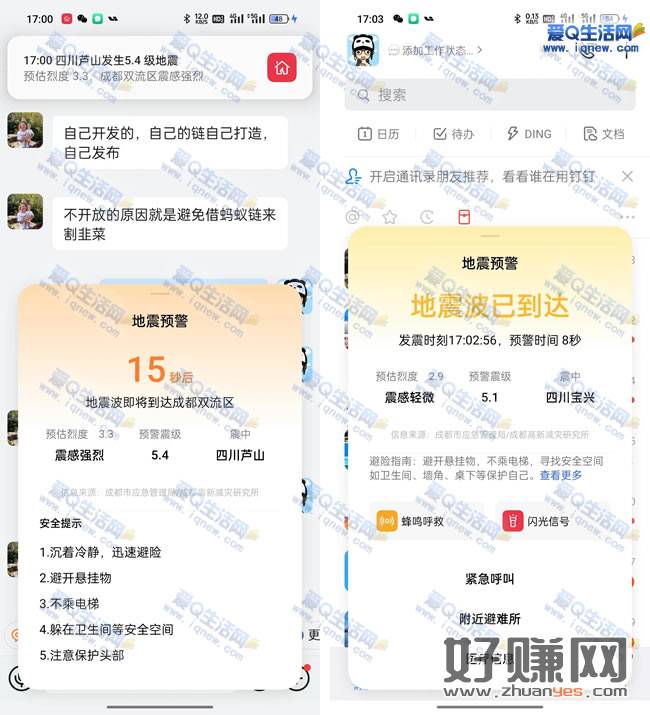 比如我昨天看朋友圈在陕西的朋友他们预警是40多秒,成都我看到的时候是十多秒。