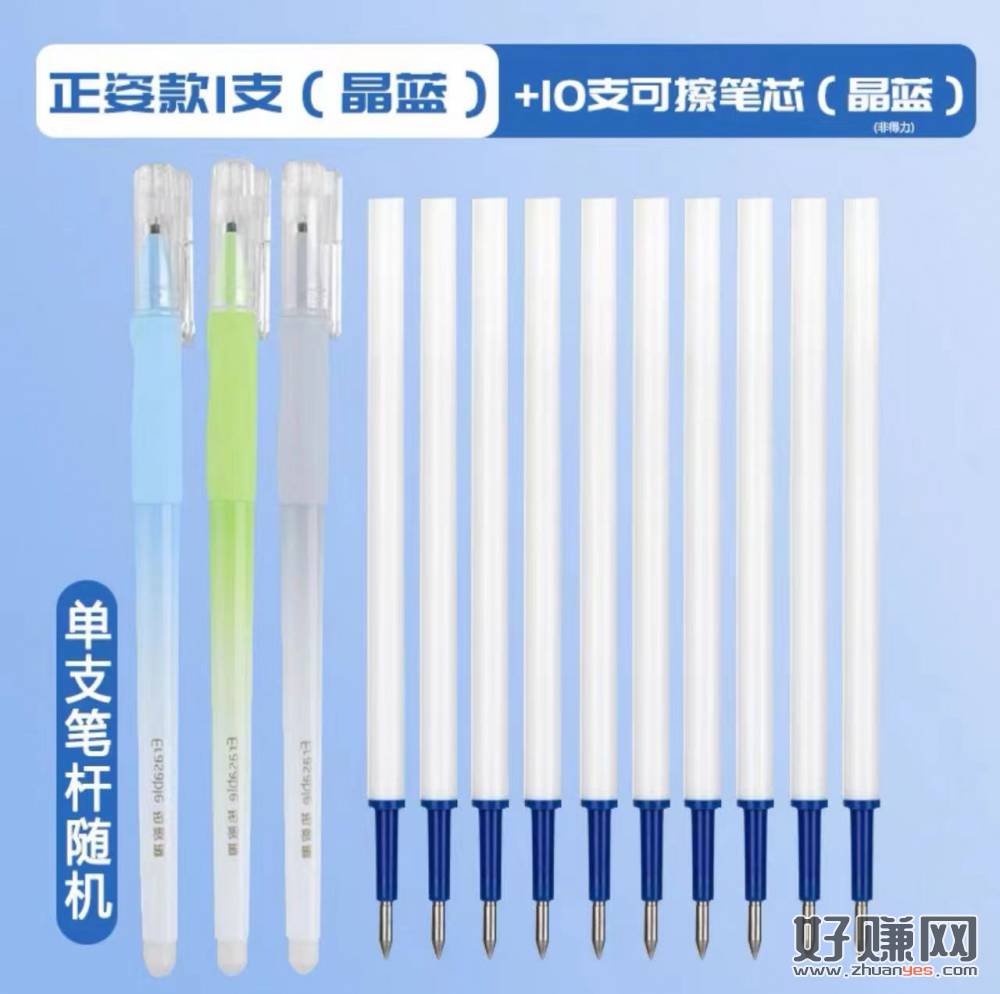 1.9亓拍下得力可擦中性笔1支10支笔芯自带可擦笔头,