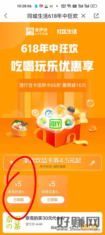 3 够买奈雪50 提交订单44 用云闪付支付 选择建行xyk 实际支付24